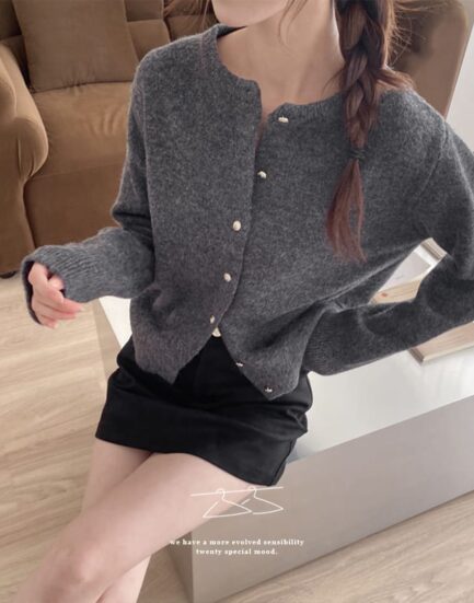 貴族小香款--金釦親膚混羊毛針織上衣 2502030-優雅灰
