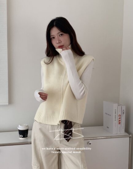 韓妞保暖必備--高保暖雙拉高磅針織背心 2504018-氣質白