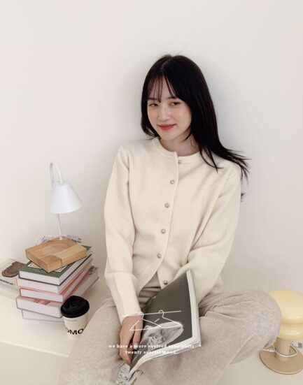 貴族小香款--金釦親膚混羊毛針織上衣 2502030-氣質白