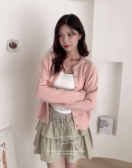 貴族小香款--金釦親膚混羊毛針織上衣 2502030-迷人粉