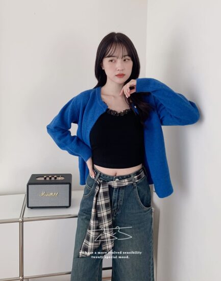 貴族小香款--金釦親膚混羊毛針織上衣 2502030-復古藍