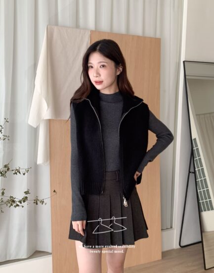 韓妞保暖必備--高保暖雙拉高磅針織背心 2504018-神秘黑