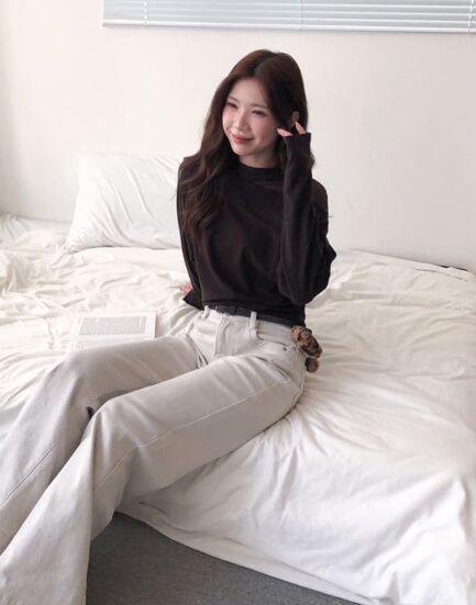巴黎時裝周—親膚內絨側拉皺柔毛平口上衣 2501272-知性杏