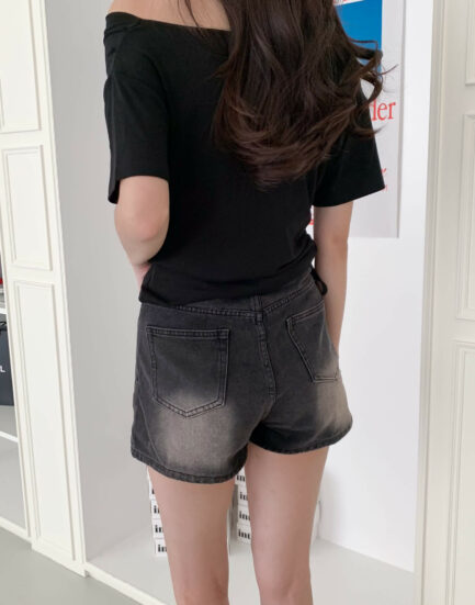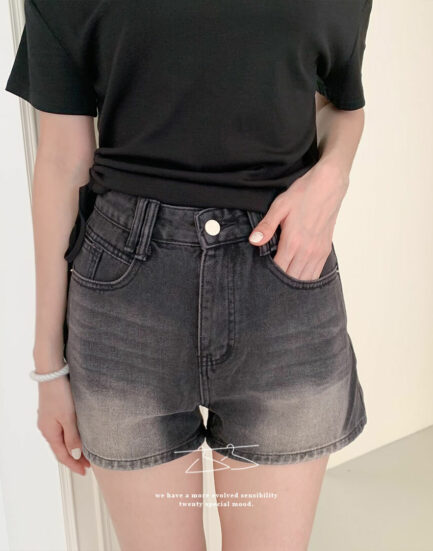 復古色調--酷甜刷色好比例牛仔短褲2511007-百搭黑