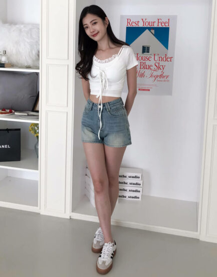 復古色調--酷甜刷色好比例牛仔短褲2511007-復古藍