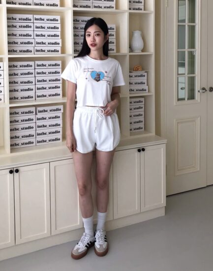 溫柔戀人--舒適蕾絲飾條鬆緊棉短褲 2511008-棉花白