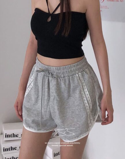 溫柔戀人--舒適蕾絲飾條鬆緊棉短褲 2511008-淺淺灰