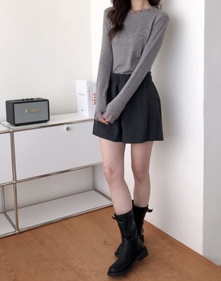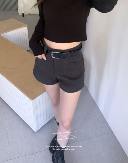 高質感首選--花苞荷葉麂絨口袋短褲 2511009-霧調灰