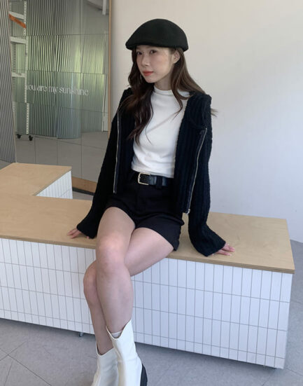 高質感首選--花苞荷葉麂絨口袋短褲 2511009-百搭黑