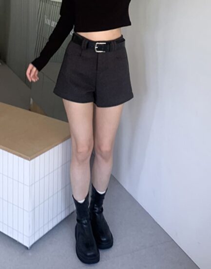 拒絕廉價感—高磅挺版親膚雙層毛呢短褲裙 2513026-優雅灰