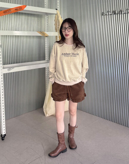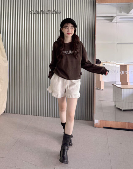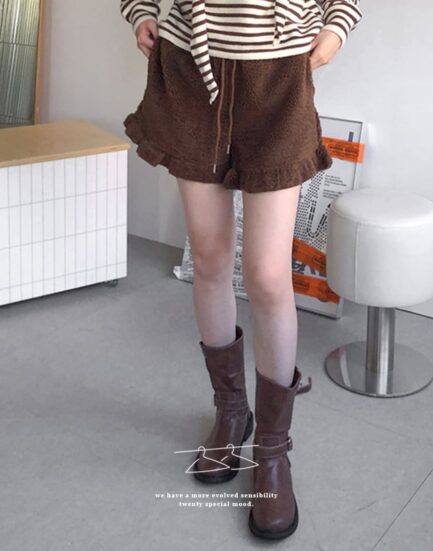 可愛過冬—滑順泰迪熊荷葉邊鬆緊短褲 2511011-美式咖啡