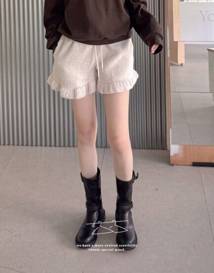 可愛過冬—滑順泰迪熊荷葉邊鬆緊短褲 2511011-棉麻杏