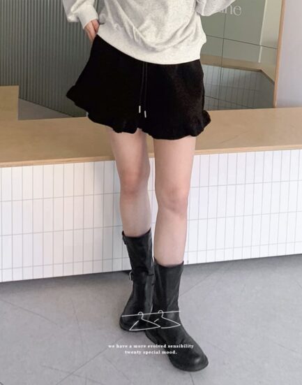 可愛過冬—滑順泰迪熊荷葉邊鬆緊短褲 2511011-百搭黑