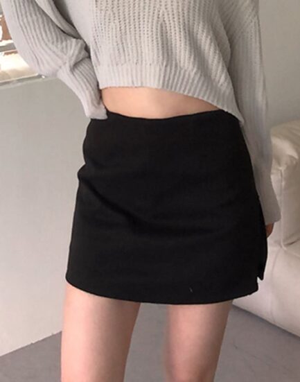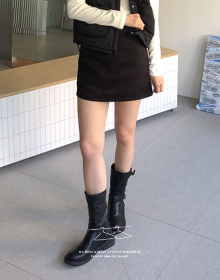 拒絕廉價感—高磅挺版親膚雙層毛呢短褲裙 2513026-神秘黑