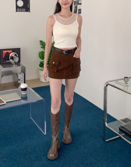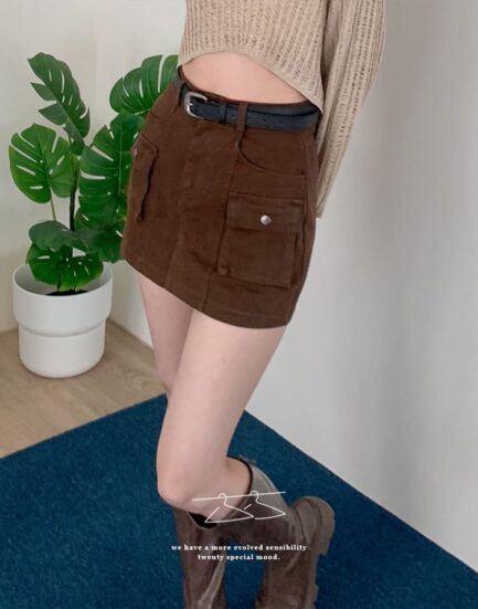 甜酷女孩--口袋高磅質感工裝短褲裙(附皮帶) 2513018-美式咖啡
