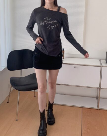 自帶優雅光—高磅挺版貴氣修身磨毛短裙 2513028-美式咖啡