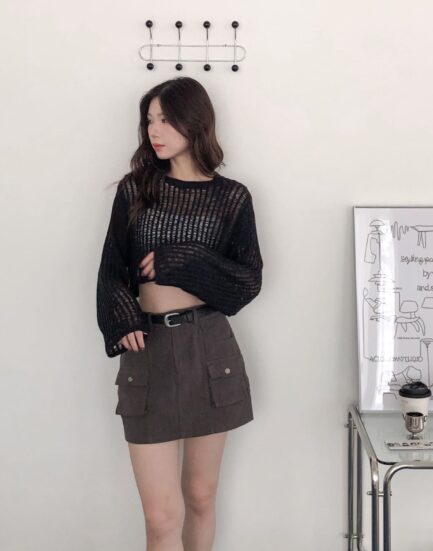 甜酷女孩--口袋高磅質感工裝短褲裙(附皮帶) 2513018-百搭黑