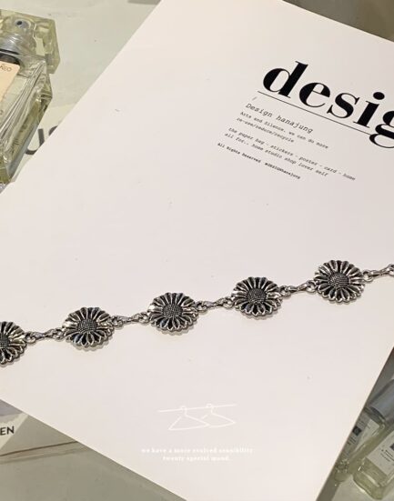 韓妞穿搭必備—美美小雛菊銀鎖片腰鍊 2561019-時尚銀