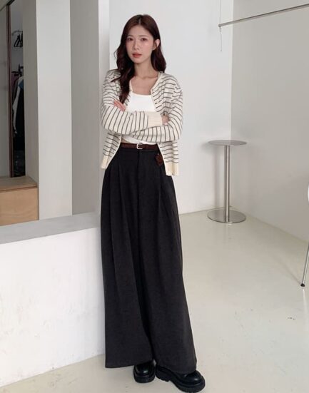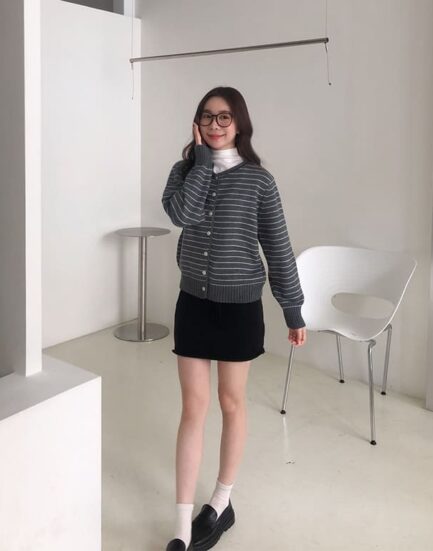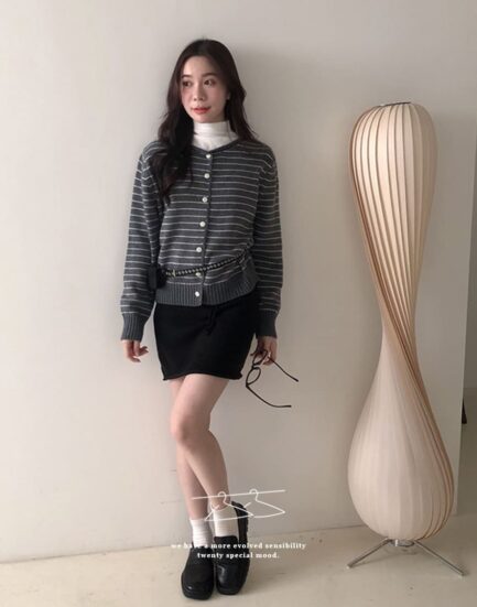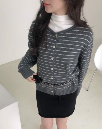 質感鄰家女孩--溫暖感親膚條紋捲邊針織上衣 2501267-優雅灰