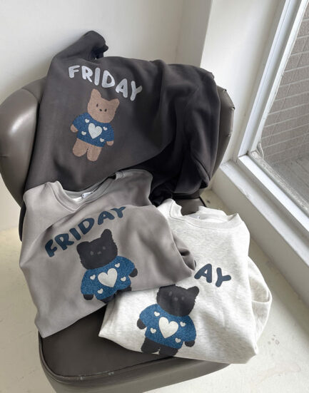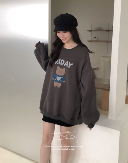 艾薇兒新歡--美式QQ泰迪熊毛字母長版大學Tee 2501265-酷帥灰