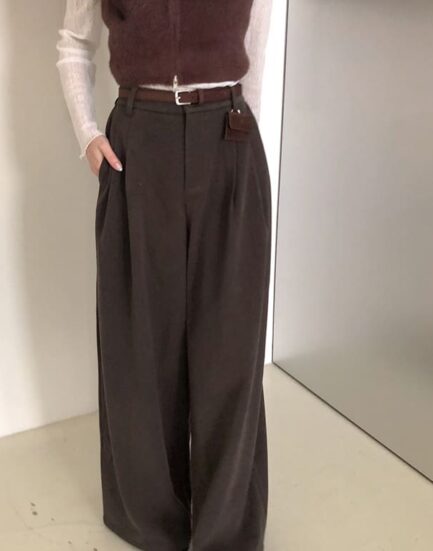 高級感拉滿--挺版毛呢內磨毛口袋長褲(附皮帶 2512040-灰咖