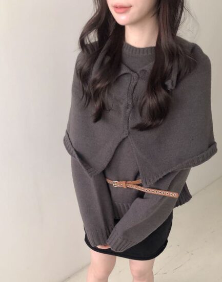 英式貴族優雅--簡約高磅保暖附披肩針織上衣 2502062-優雅灰