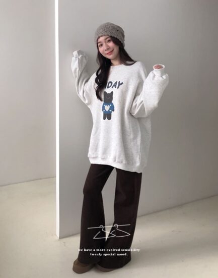 可愛抱抱--溫暖感玩偶直噴長版大學Tee 2501264-霧調灰
