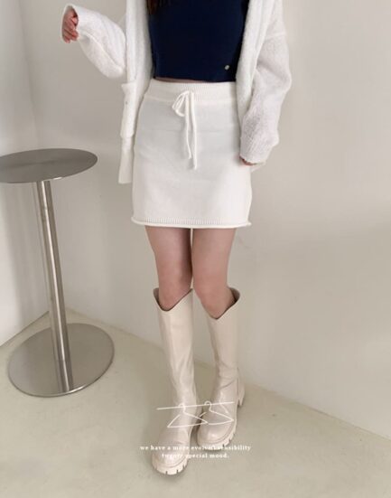優雅歐膩必搭--簡約鬆緊捲邊針織短裙 2513027-氣質白