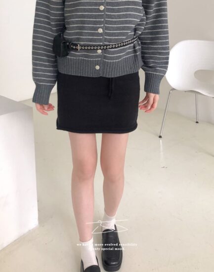 優雅歐膩必搭--簡約鬆緊捲邊針織短裙 2513027-神秘黑