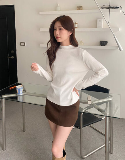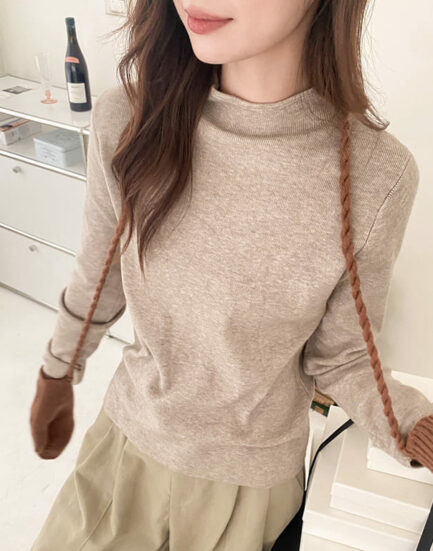 最愛穿那件—保暖親膚微立領簡約針織內搭 2502073-鮮奶茶