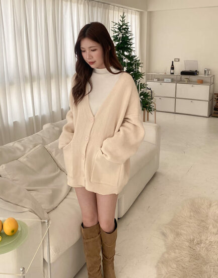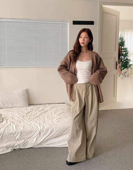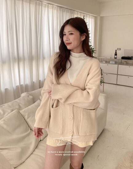 千金大小姐—高磅保暖柔膚簡約質感針織外套 2502071-咖啡牛奶