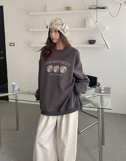 韓妞入門法寶—三隻小貓可愛必備大學棉Tee 2501271-淺淺灰