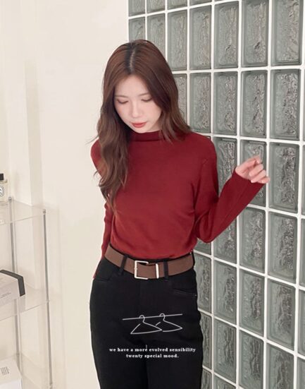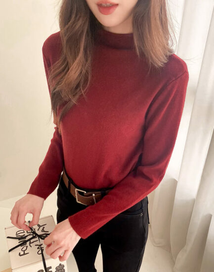 最愛穿那件—保暖親膚微立領簡約針織內搭 2502073-絕美紅