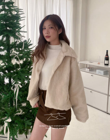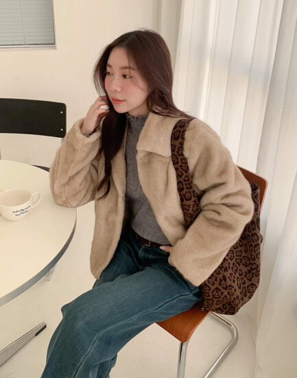 貴族千金—高級感保暖柔順熊毛外套 2504033-知性杏