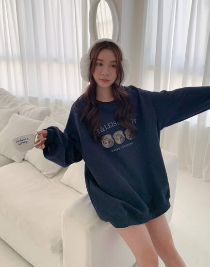 韓妞入門法寶—三隻小貓可愛必備大學棉Tee 2501271-藍莓藍