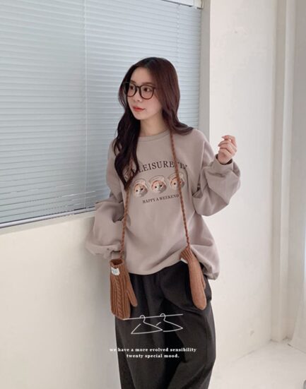 東大門新品上線—貴族QQ毛字母圓領上衣 2501273-咖啡牛奶