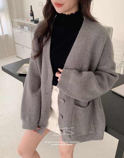 千金大小姐—高磅保暖柔膚簡約質感針織外套 2502071-優雅灰
