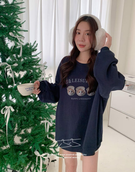 韓妞入門法寶—三隻小貓可愛必備大學棉Tee 2501271-鮮奶茶