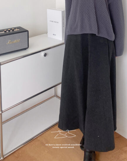 針織裙天花板--親膚滑感高磅羊毛感傘擺長裙 2414019-優雅灰