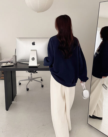 慵懶氛圍--無印簡約單扣寬袖粗針織罩衫 2402029-復古藍