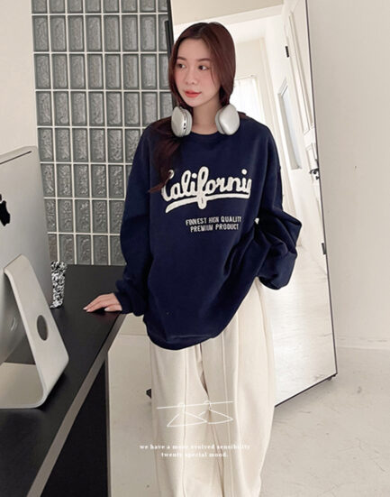 艾薇兒新歡--美式QQ泰迪熊毛字母長版大學Tee 2501265-藍莓藍
