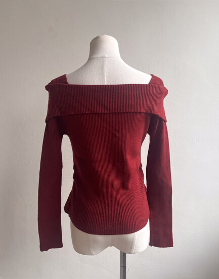 氣質優雅款--金釦一字肩親膚針織上衣 2502027-絕美紅