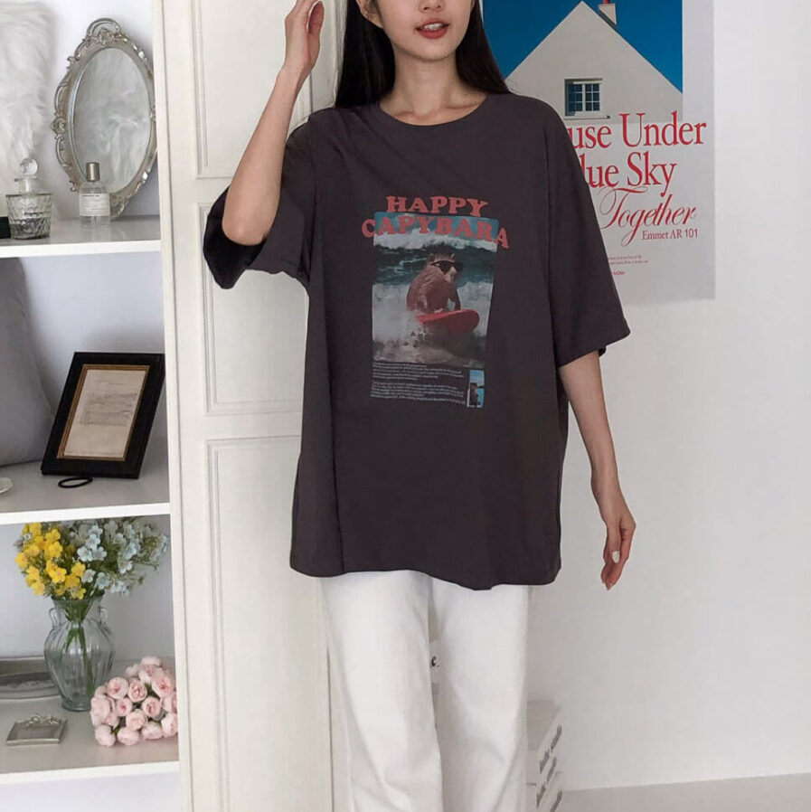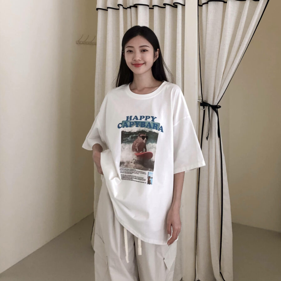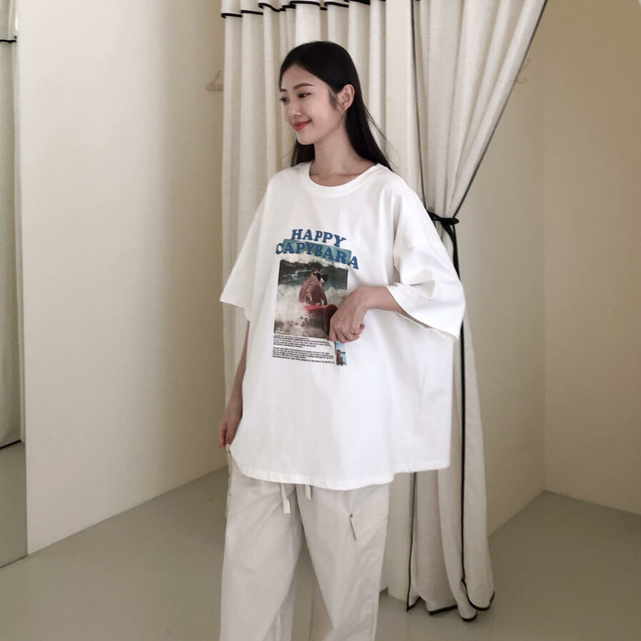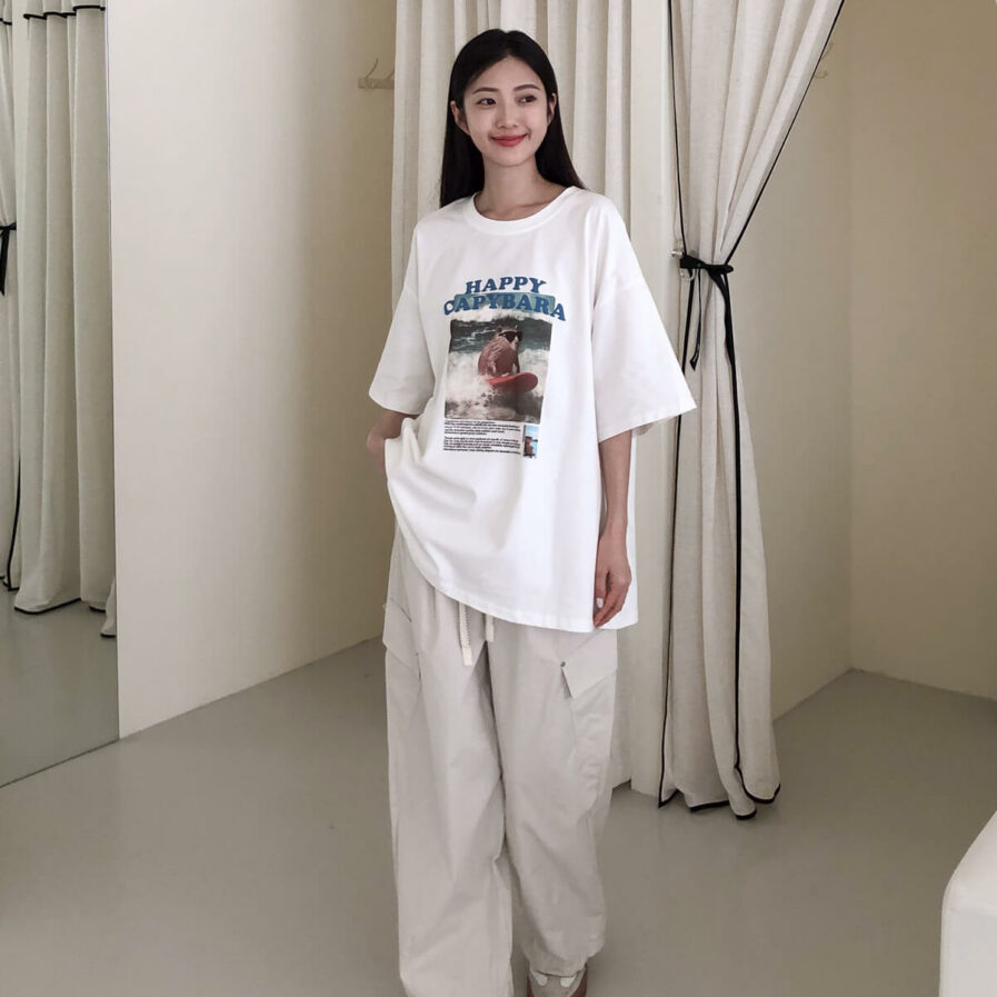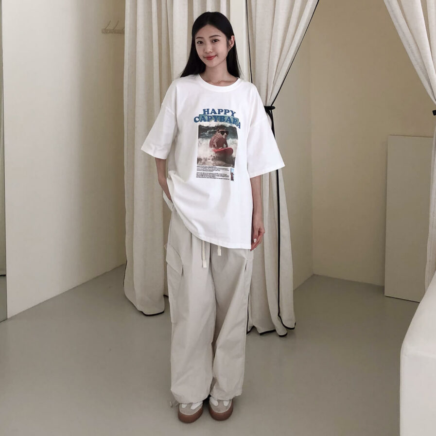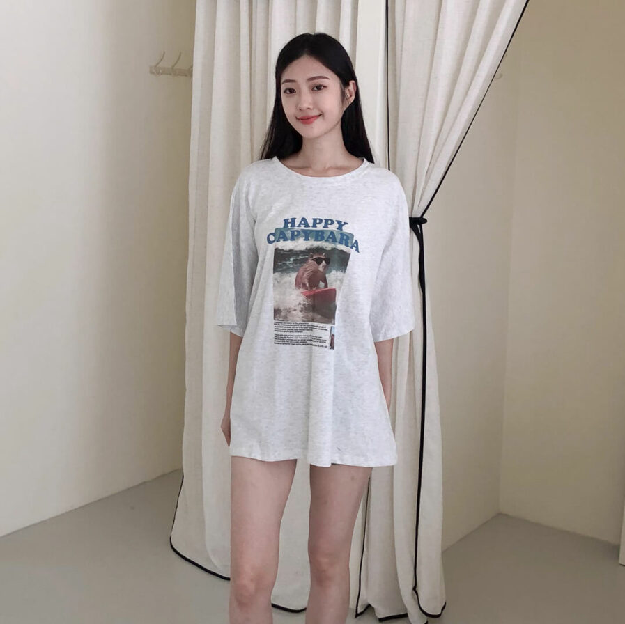 滿滿度假感圖案 看了心情就放鬆☀️🏝️寬鬆版型 情侶、好朋友都能一起穿💕短褲、長裙隨便配都超可愛!