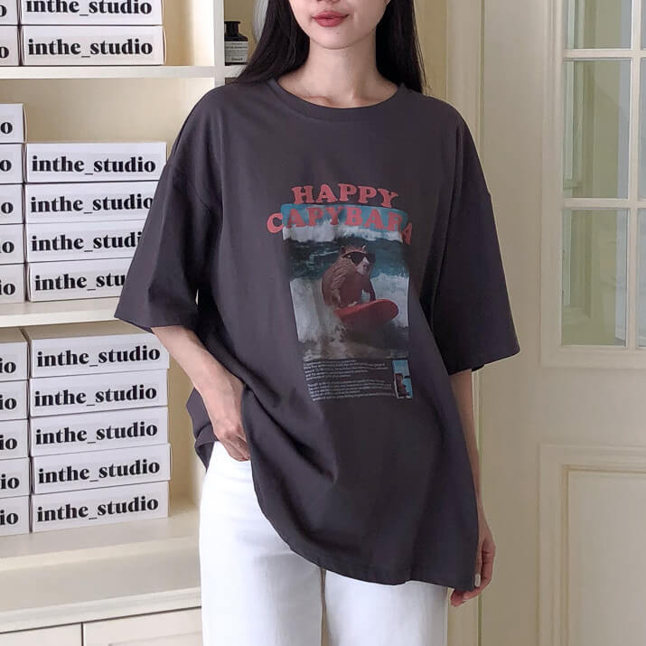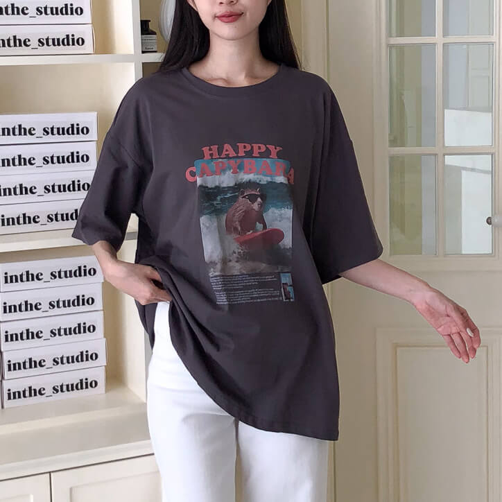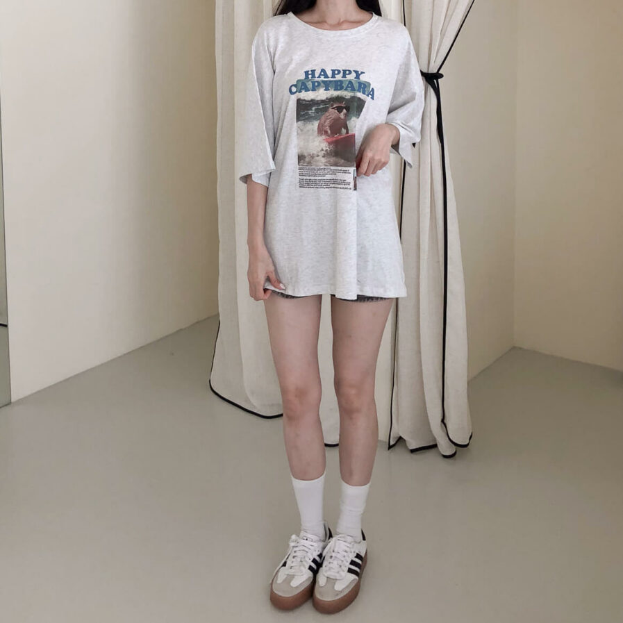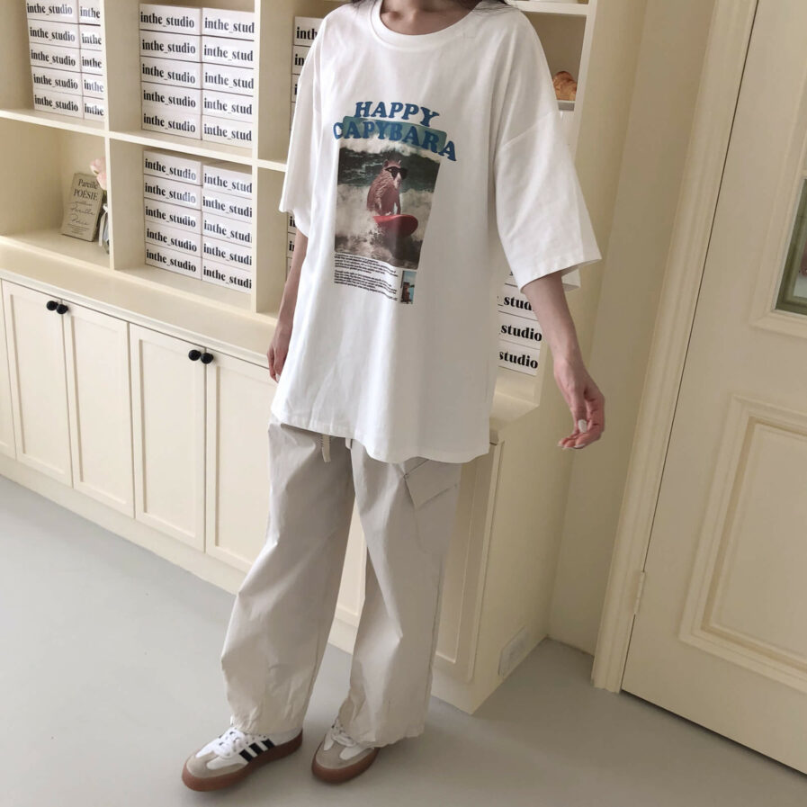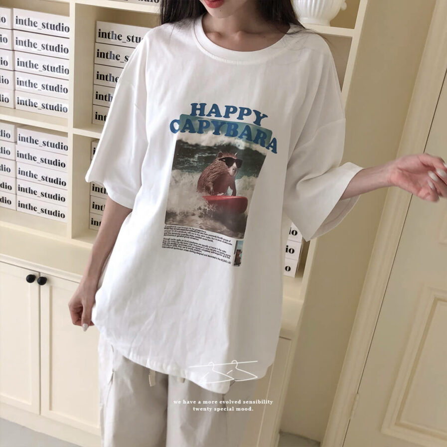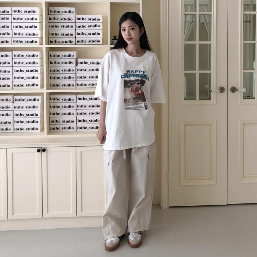 滿滿度假感圖案 看了心情就放鬆☀️🏝️寬鬆版型 情侶、好朋友都能一起穿💕短褲、長裙隨便配都超可愛!