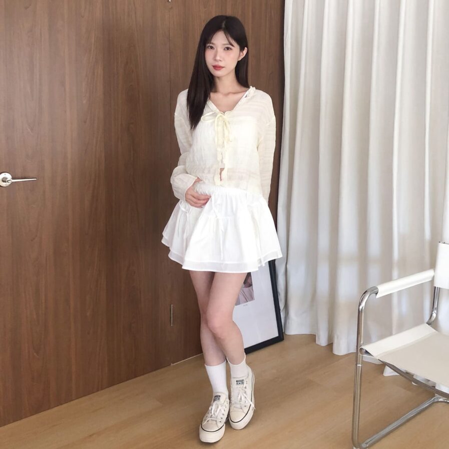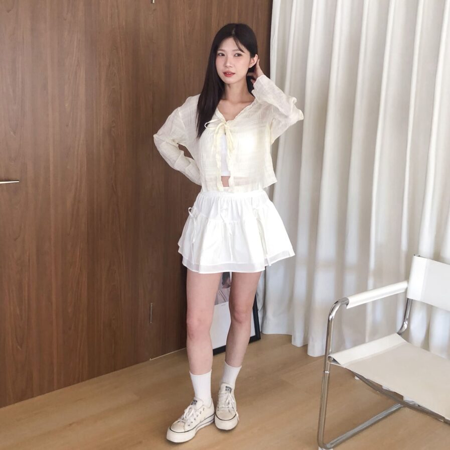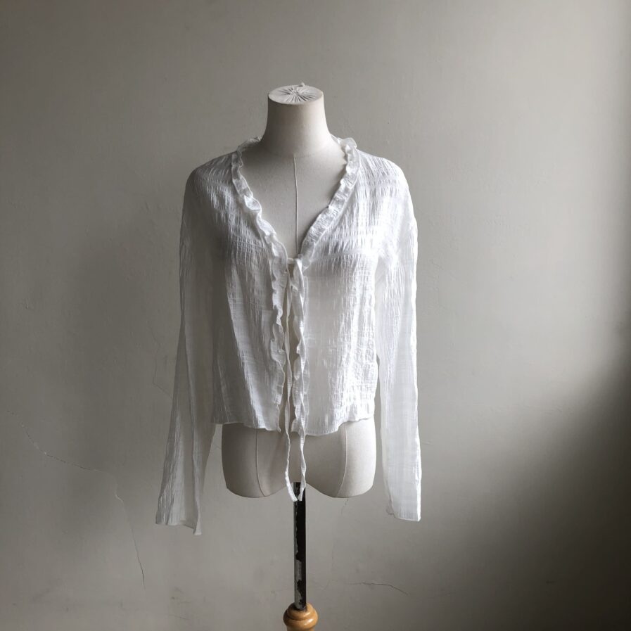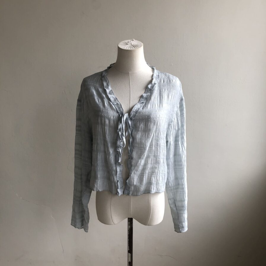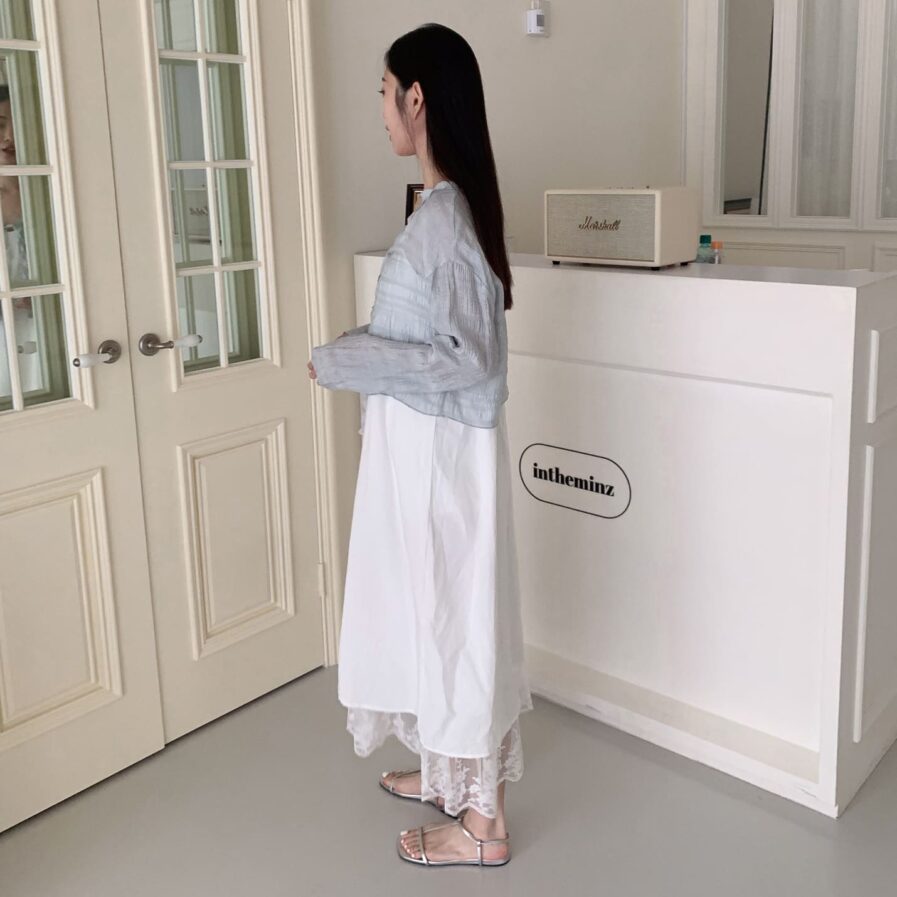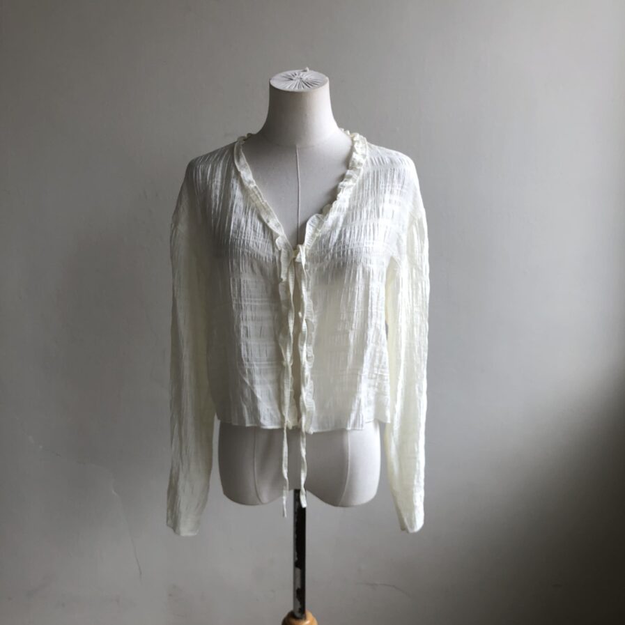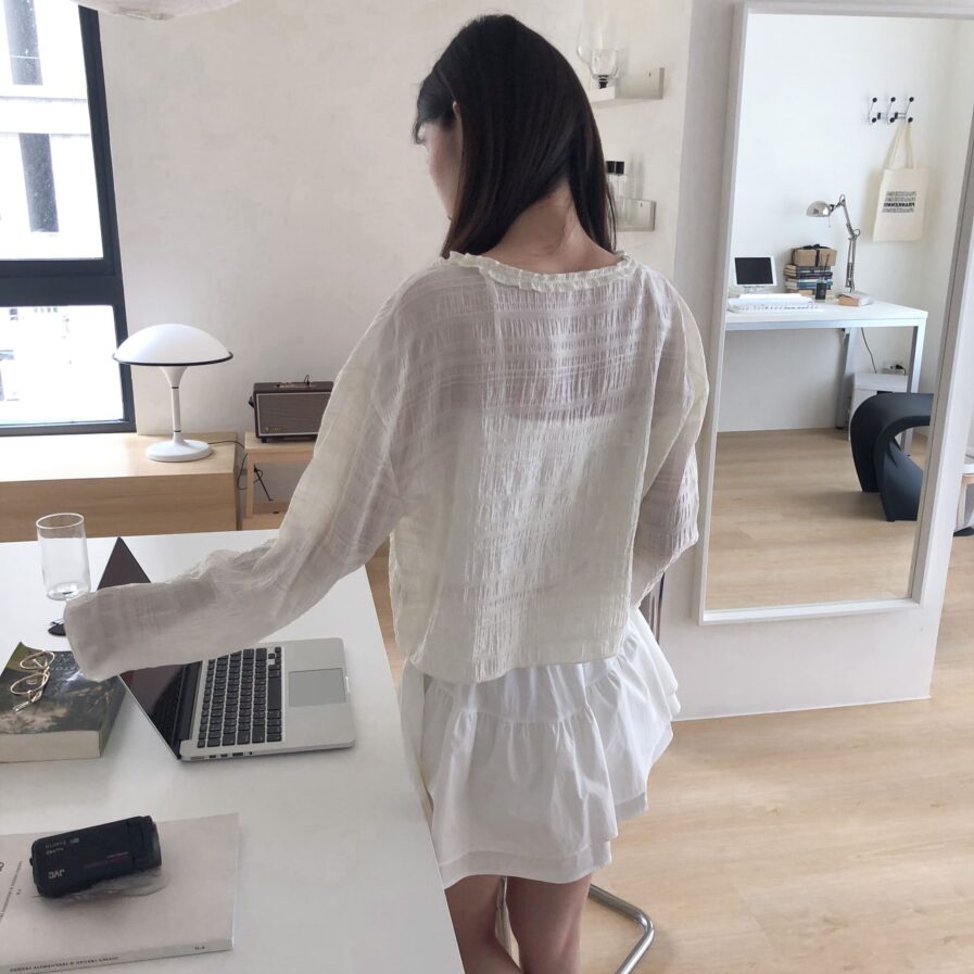 胸前綁帶設計 甜美中帶點小俏皮💕輕盈面料帶著水波紋的律動感 走起路來自帶飄飄濾鏡✨微微透膚 若隱若現的仙女感 配洋裝或小可愛都好看~日常防曬都能美到犯規☀️