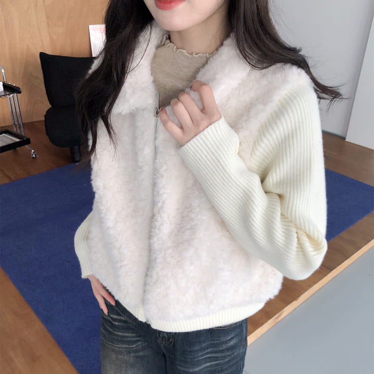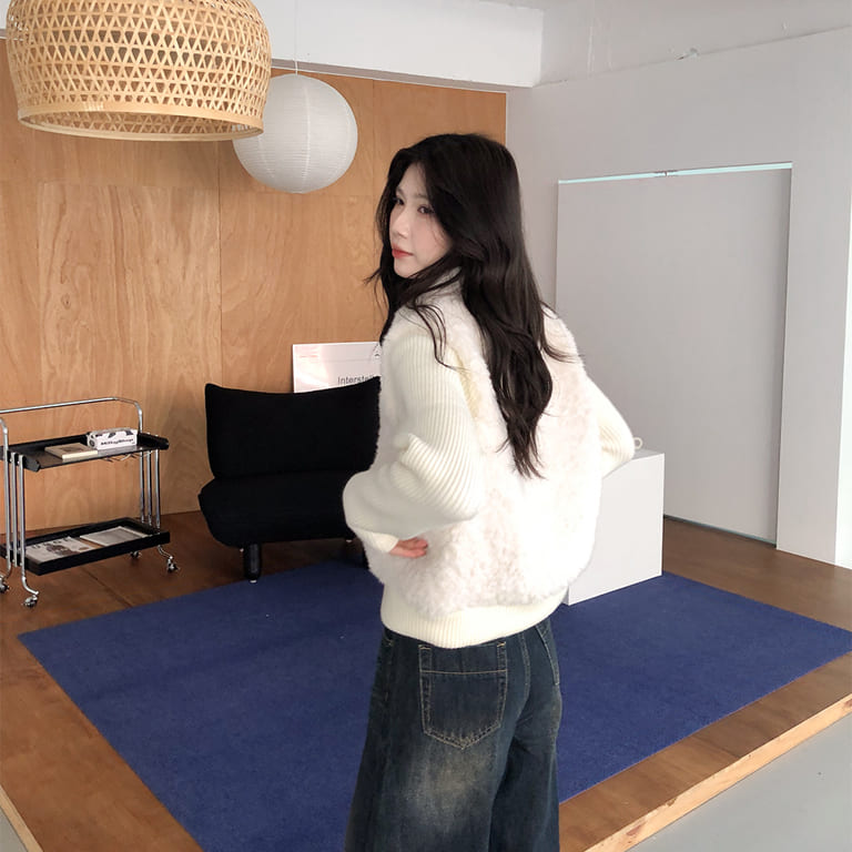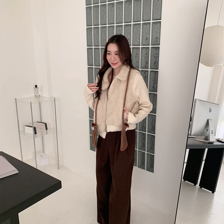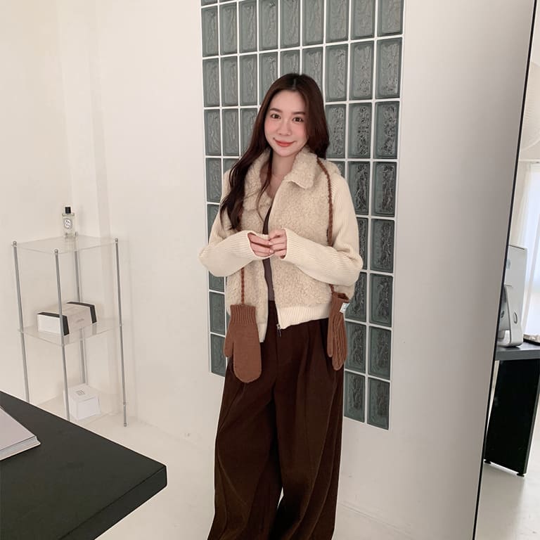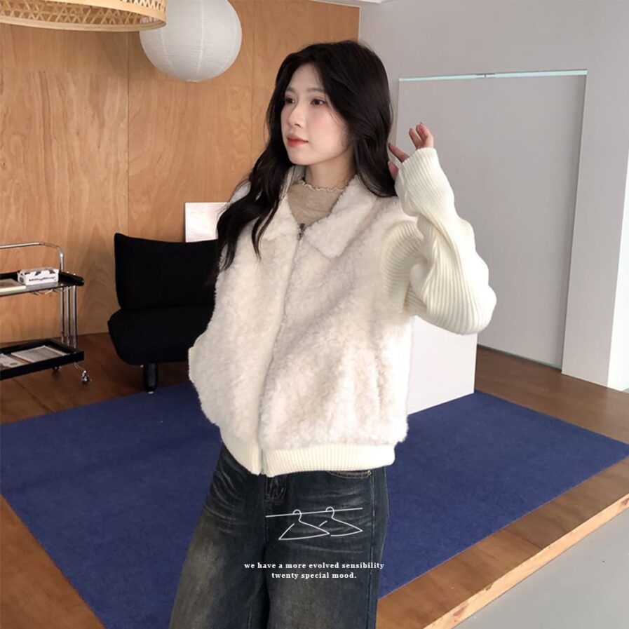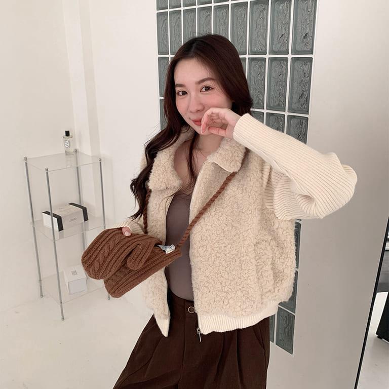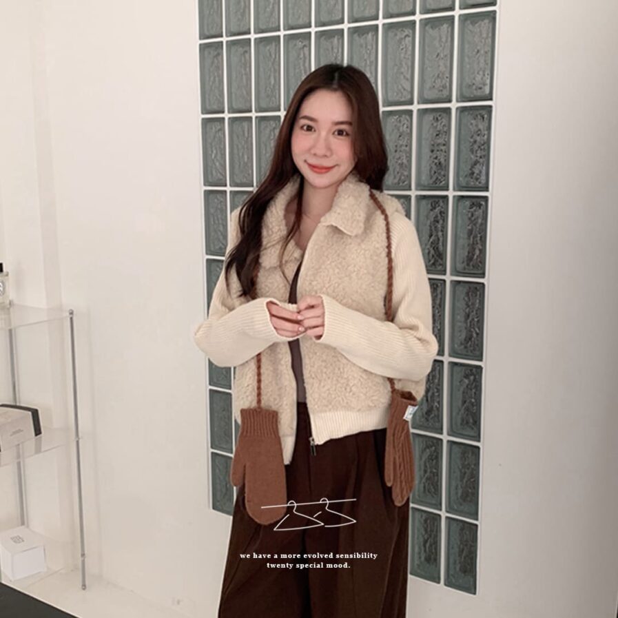 穿上它,真的會被問是哪一件🧸拼接針織設計讓整體層次更豐富。泰迪熊毛柔軟親膚,保暖又不厚重。隨便搭都像穿搭博主,出門自帶焦點。