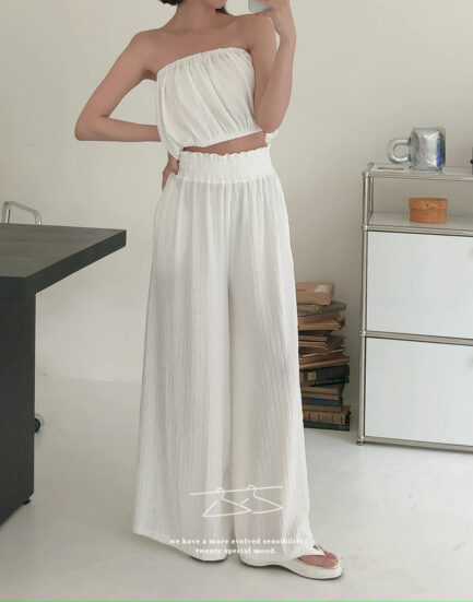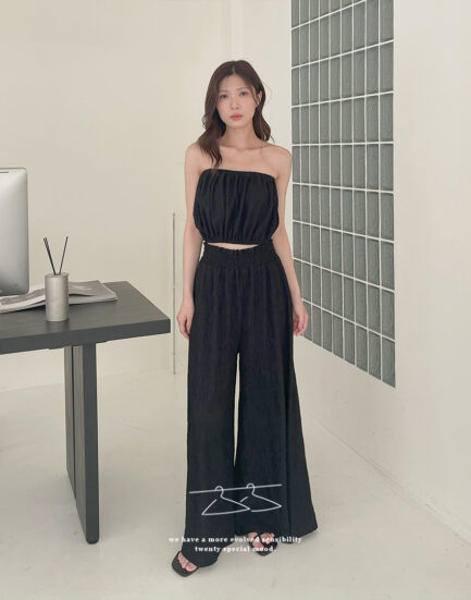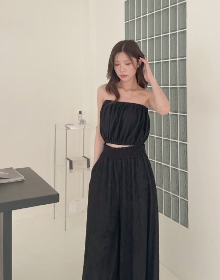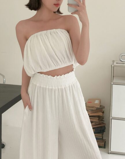 這套平口棉質套裝超可愛! 上衣是平口設計 還貼心做了胸墊 後鬆緊+下抽繩穿起來很穩~ 還有小口袋超加分✨ 下半身是傘狀裙子 俏皮可愛又有內裡褲子 完全不用怕走光 穿起來舒服又安心💕