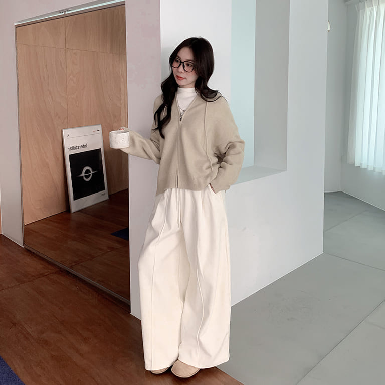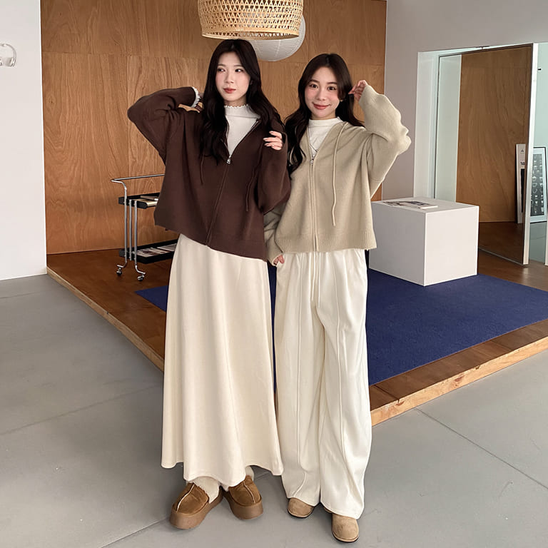 簡約無印款-保暖微厚親膚好拉連帽針織外套 2604004
