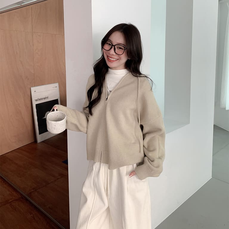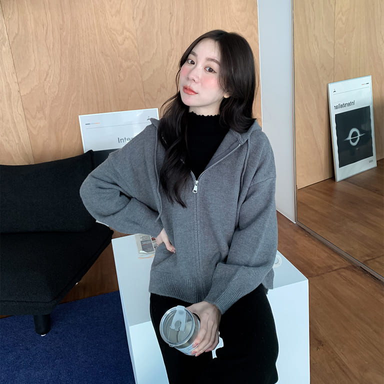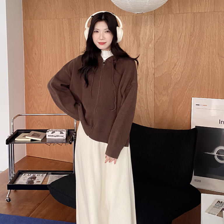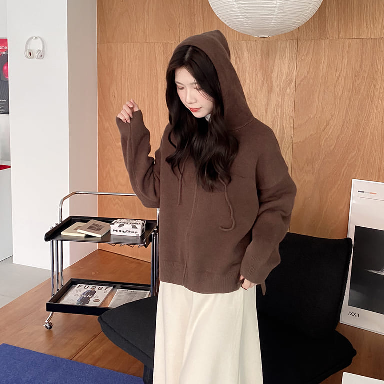 搶先評價 “簡約無印款-保暖微厚親膚好拉連帽針織外套 2604004”