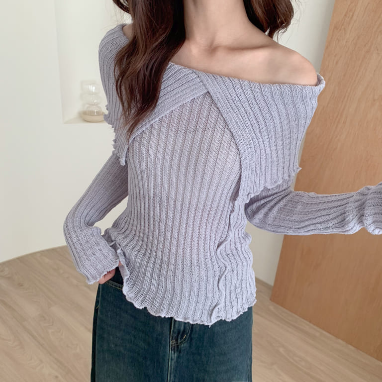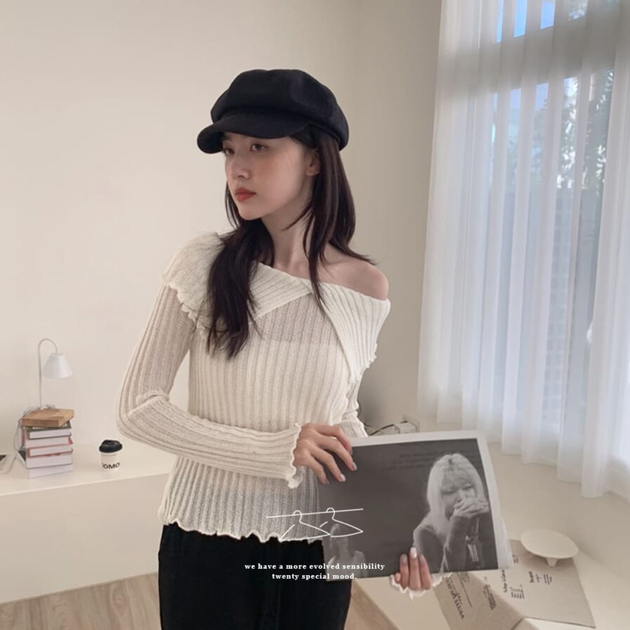 交叉翻領設計微露鎖骨 性感中帶點優雅💋鏤空細節增添層次感 每個角度都精緻動人✨親膚針織布料柔軟舒適 貼身不緊繃☁️約會、出遊都能穿出高級感與好比例💐